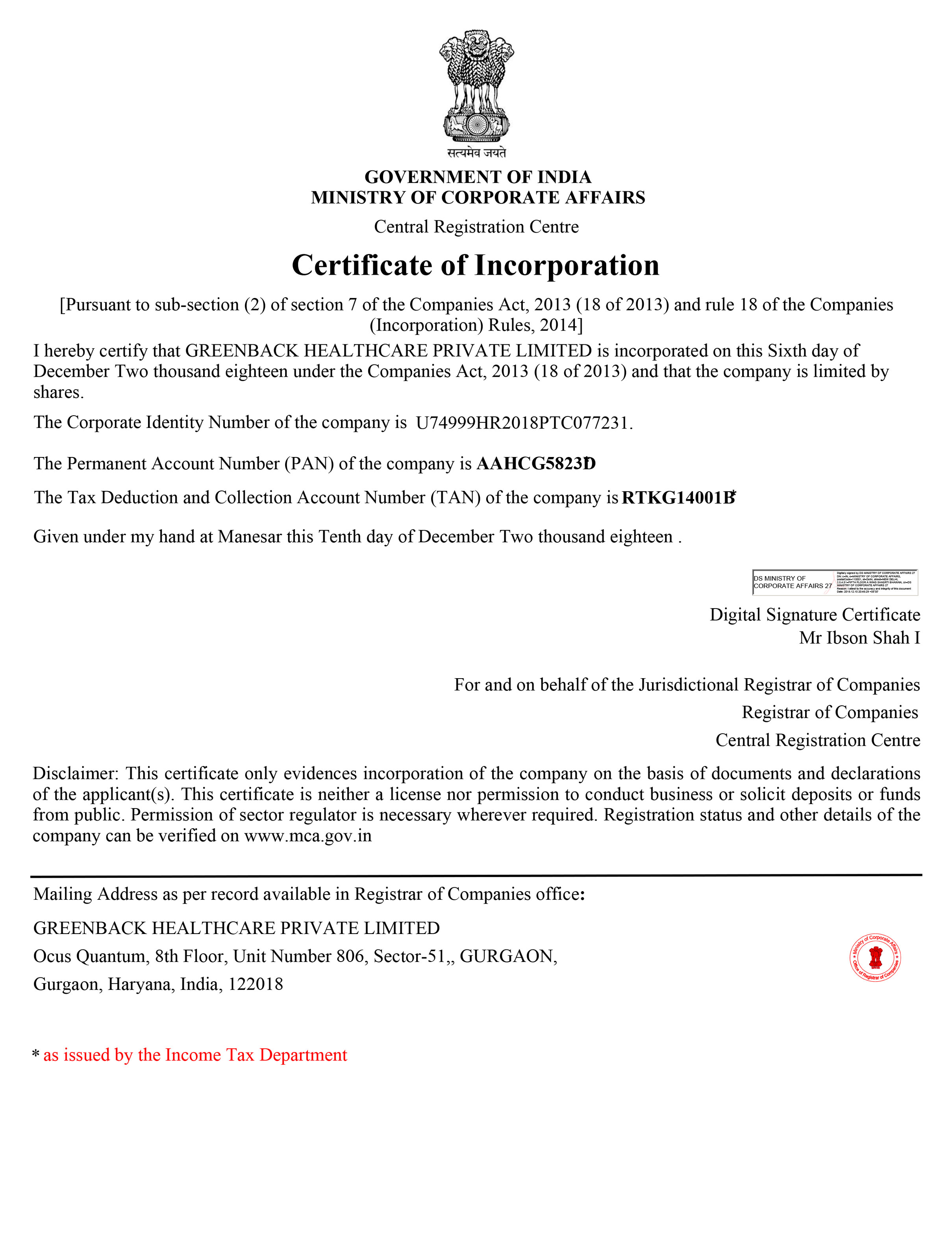 CERTIFICATE